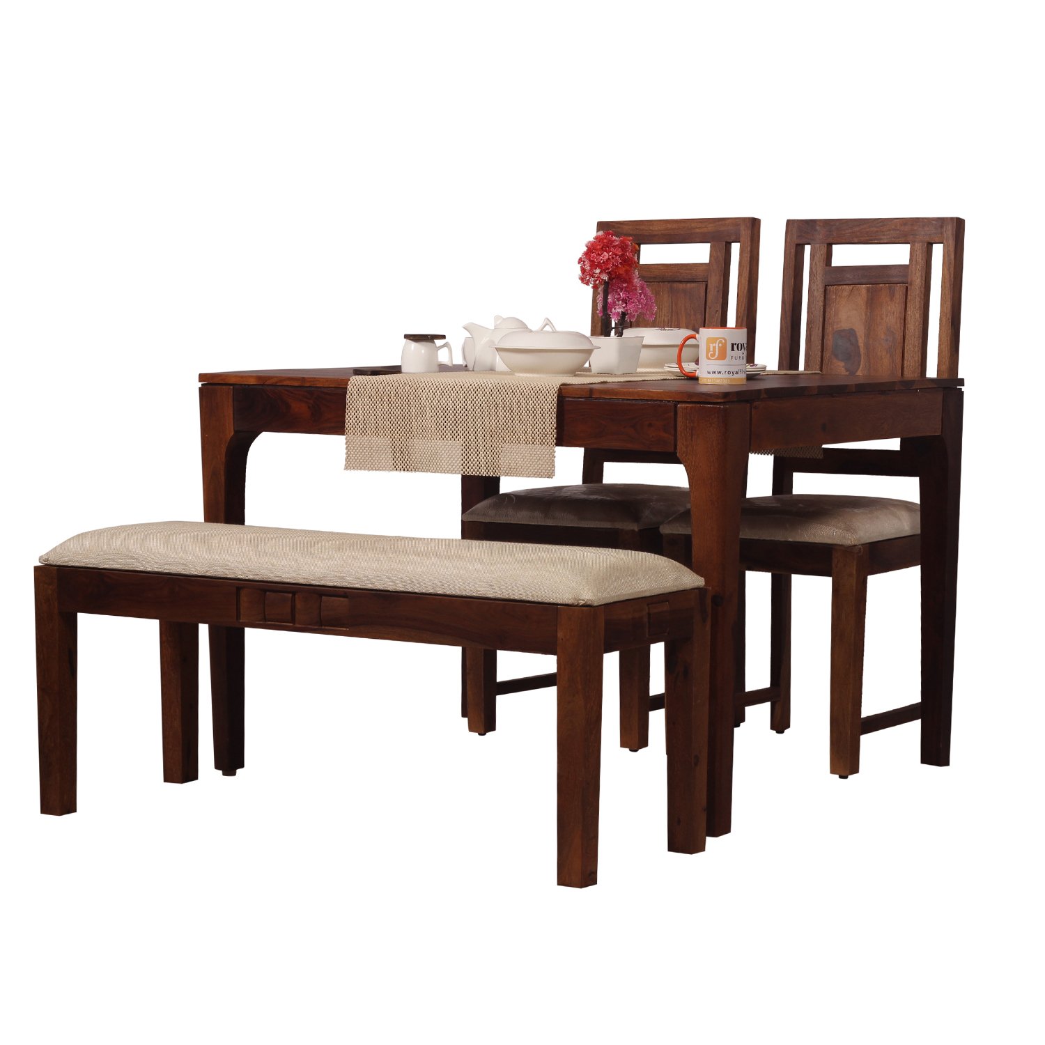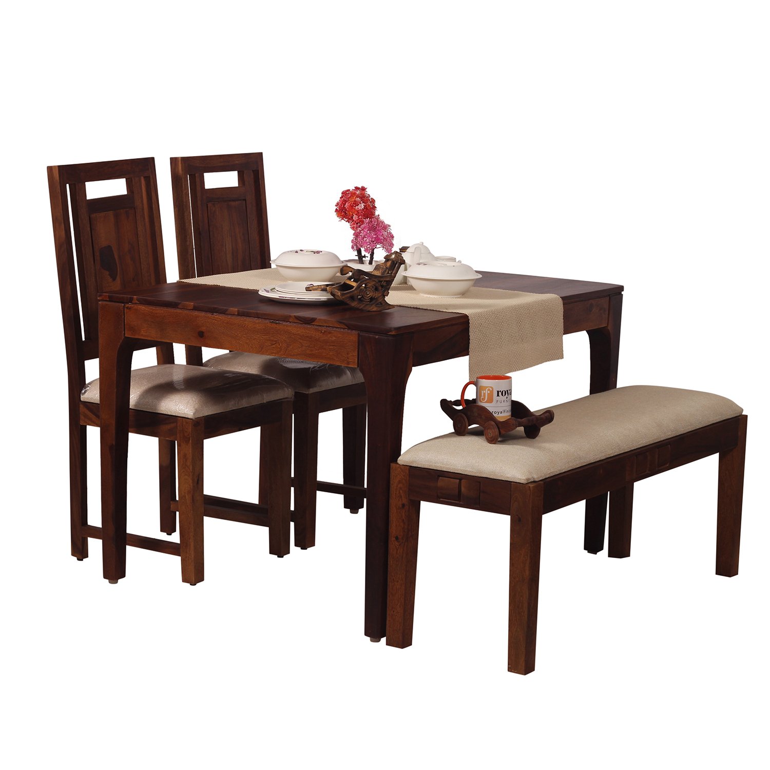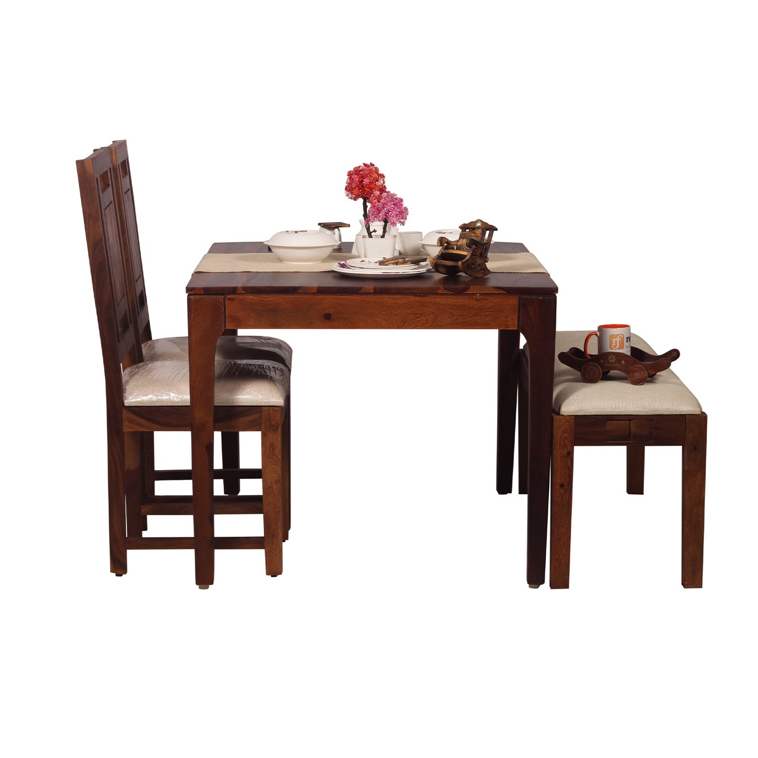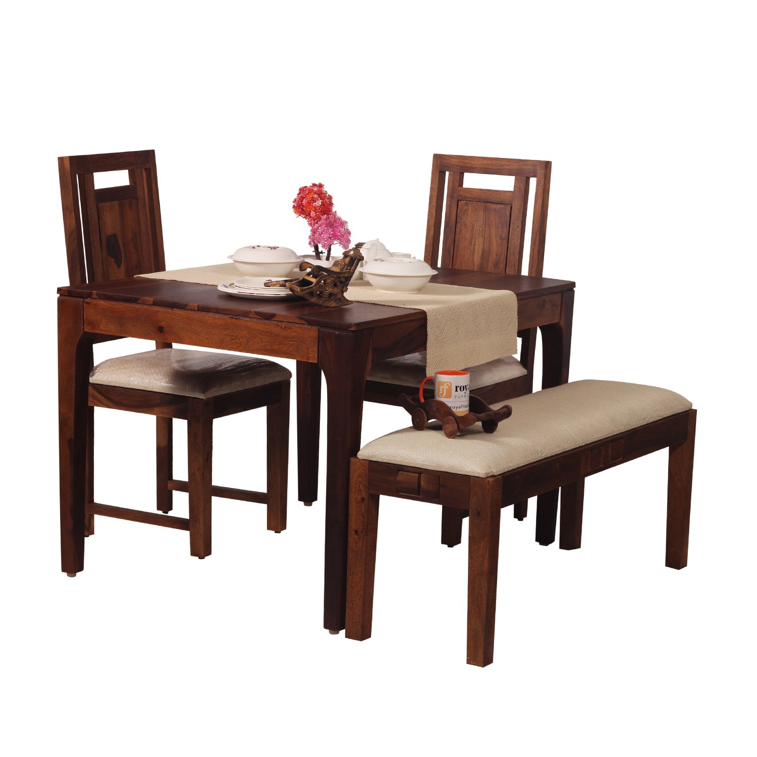 Royal Finish CuisineCraft Nivora 2 Chair & 1 Bench Dining Set in Natural Colour