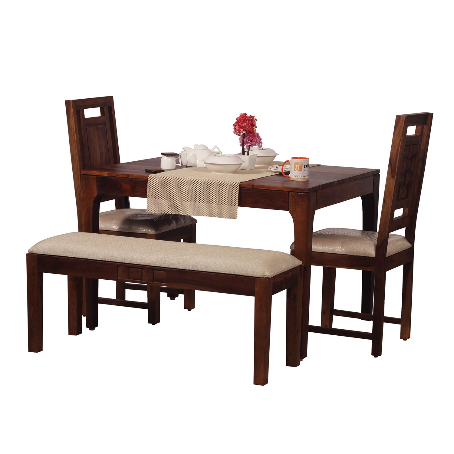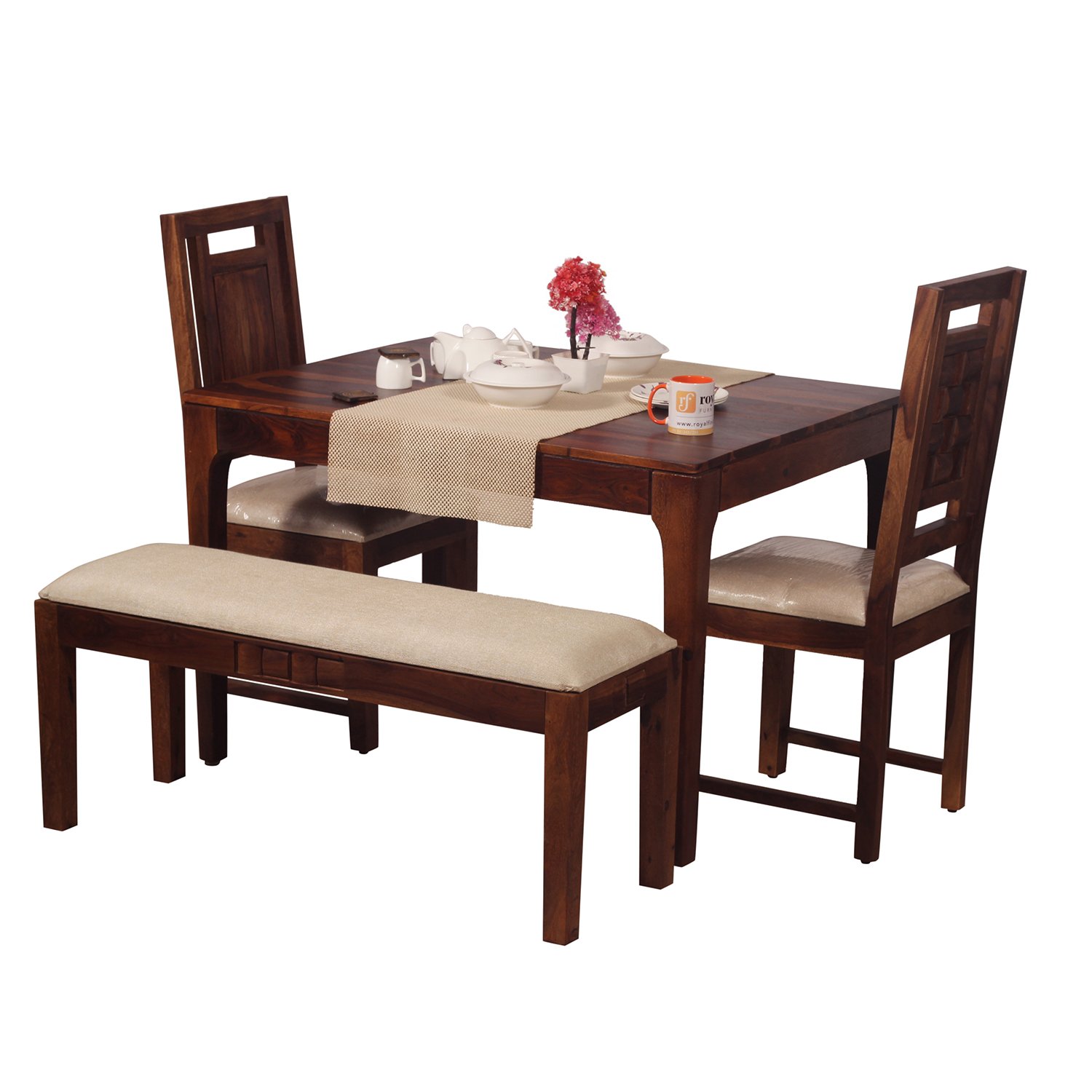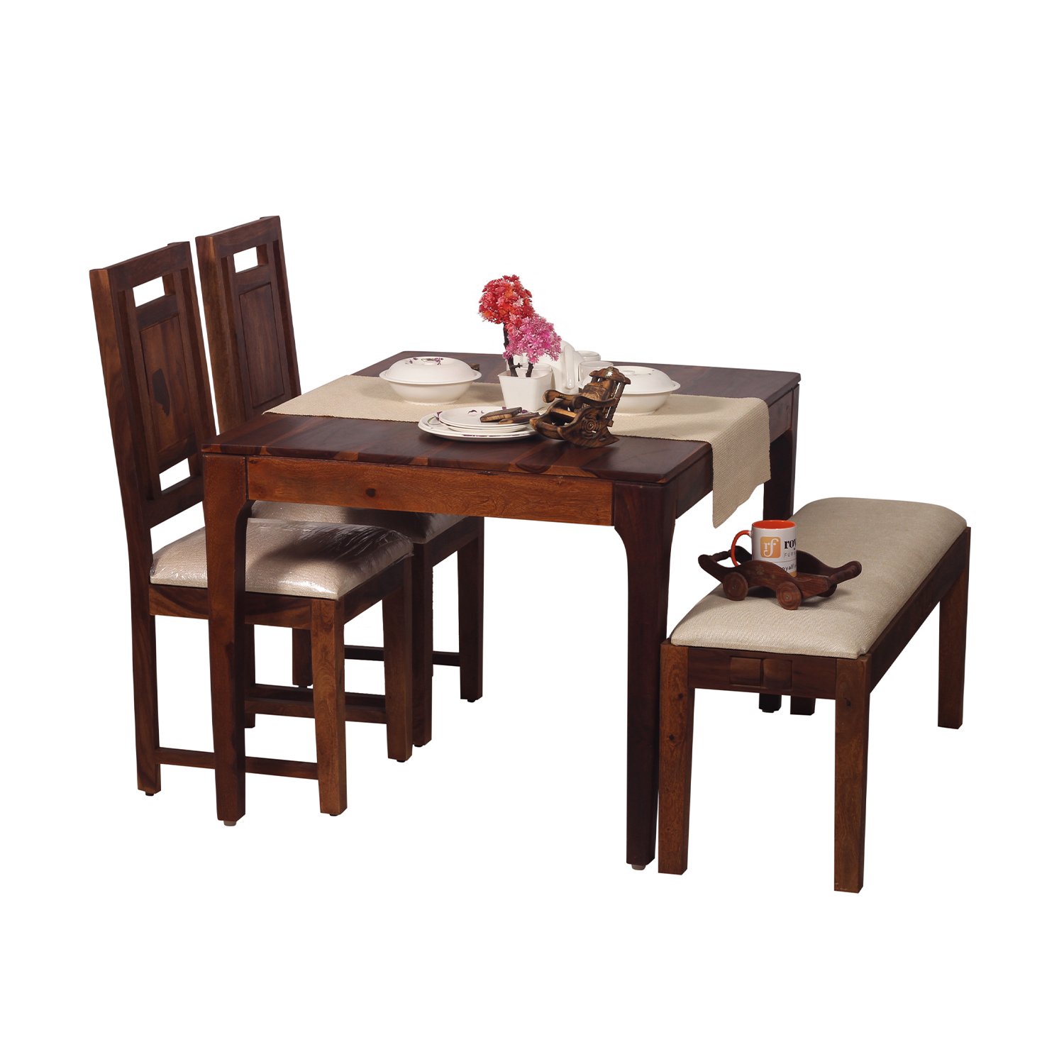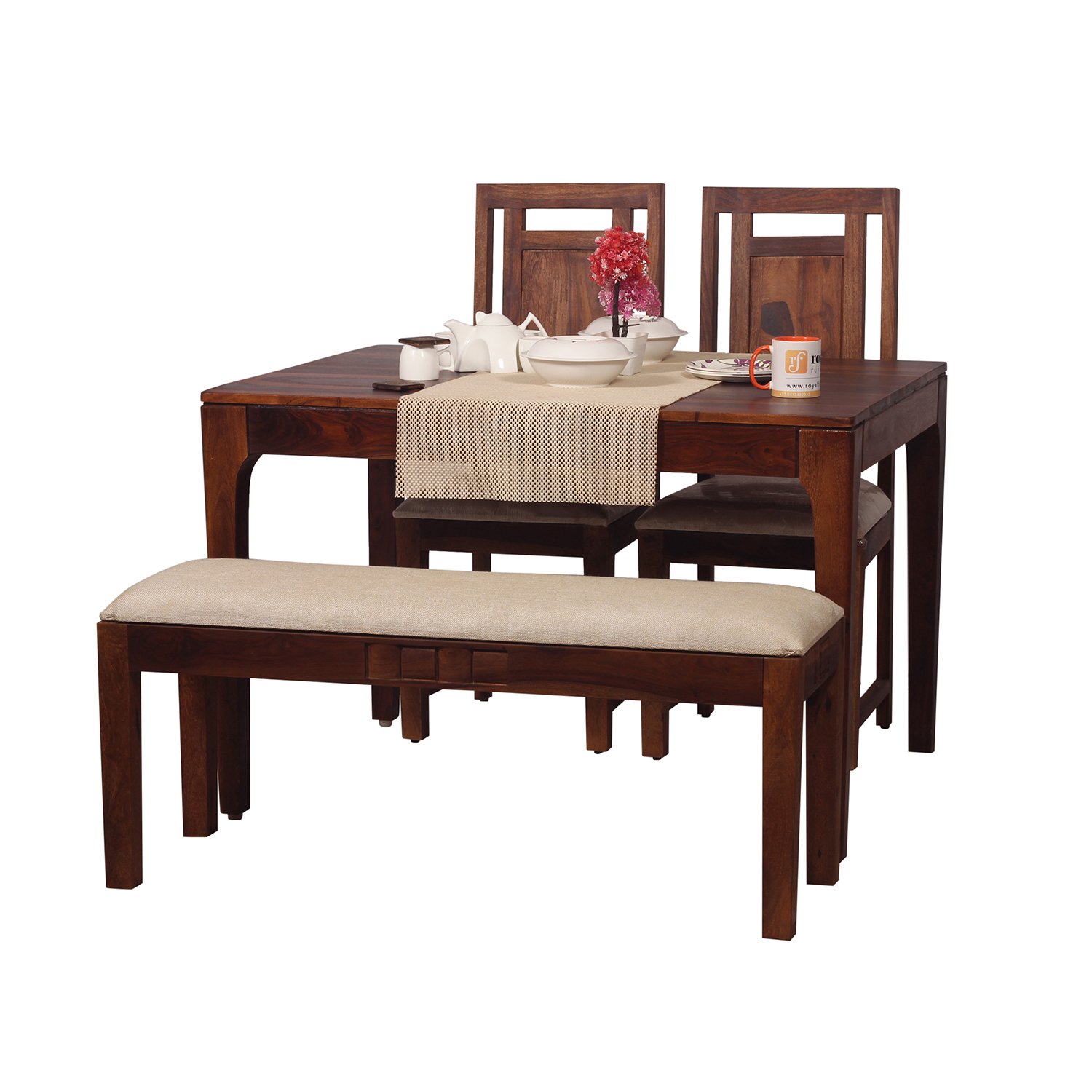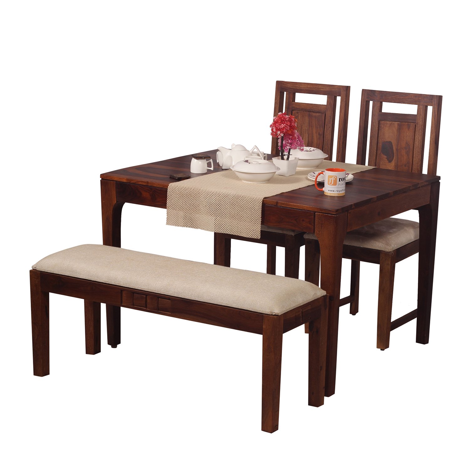 Royal Finish CuisineCraft Nivora 2 Chair & 1 Bench Dining Set in Natural Colour