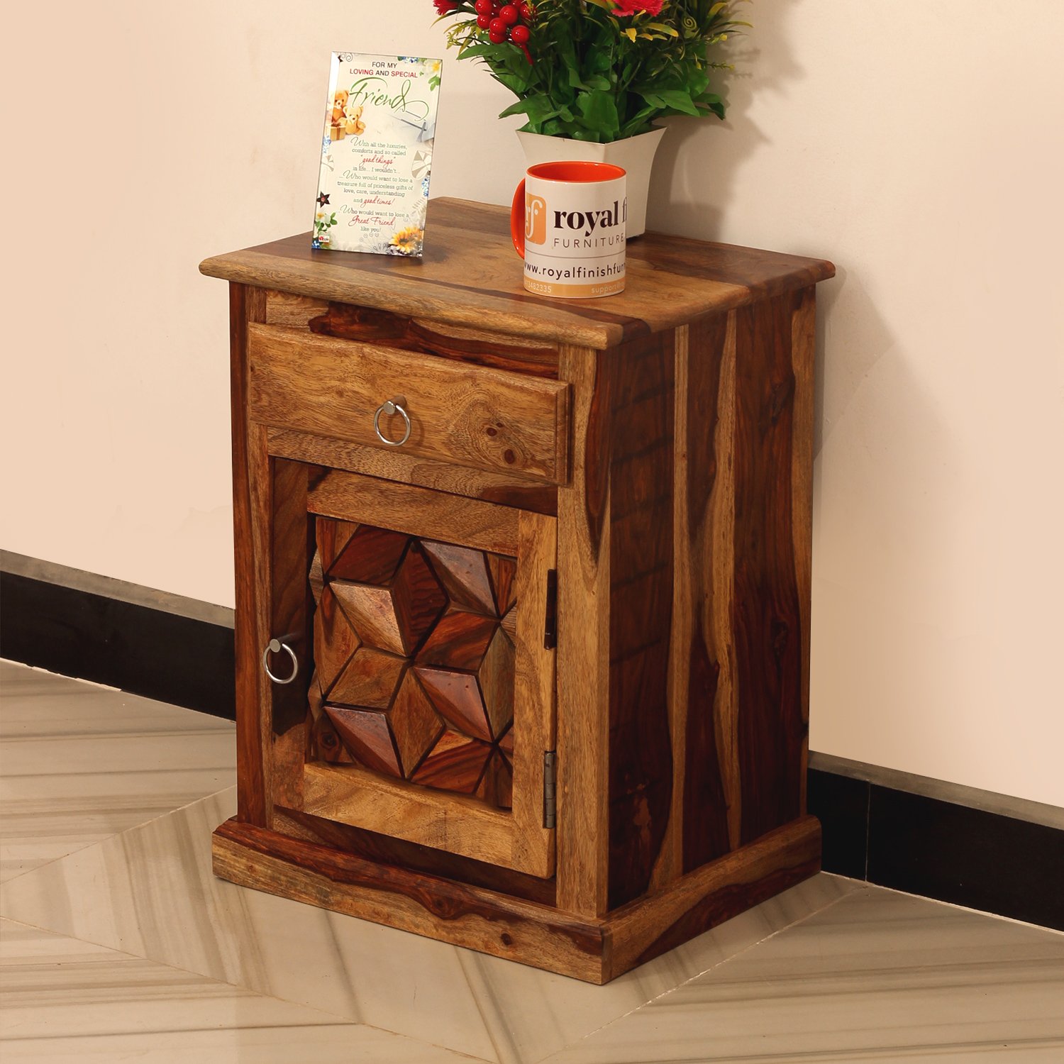 Royal Finish Neo Floresque Bedside Table In Furniture Sheesham Wood In Natural