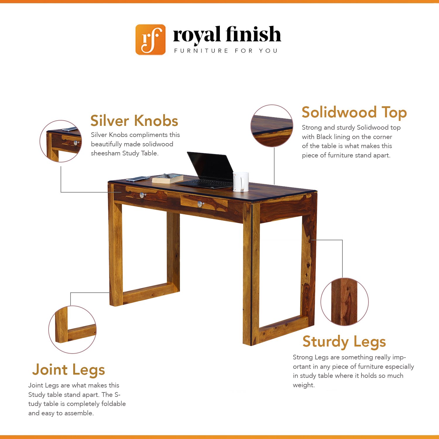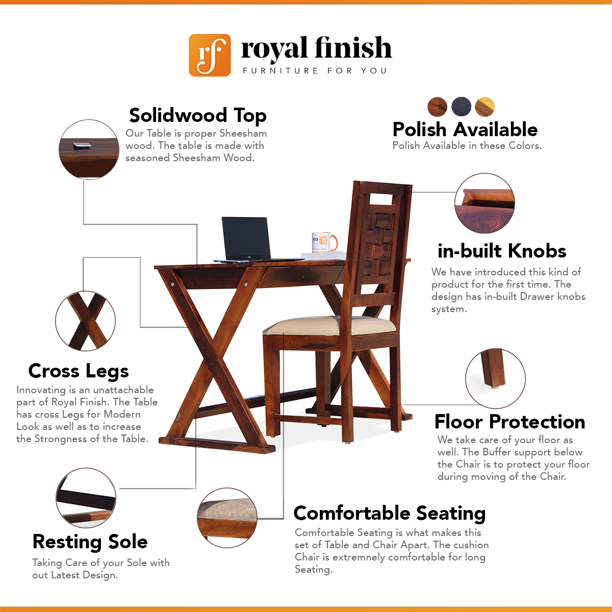 Royal Finish Sikora Study Table with Nivora Chair in Funriture Sheesham Wood