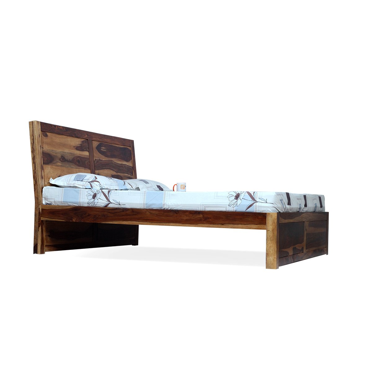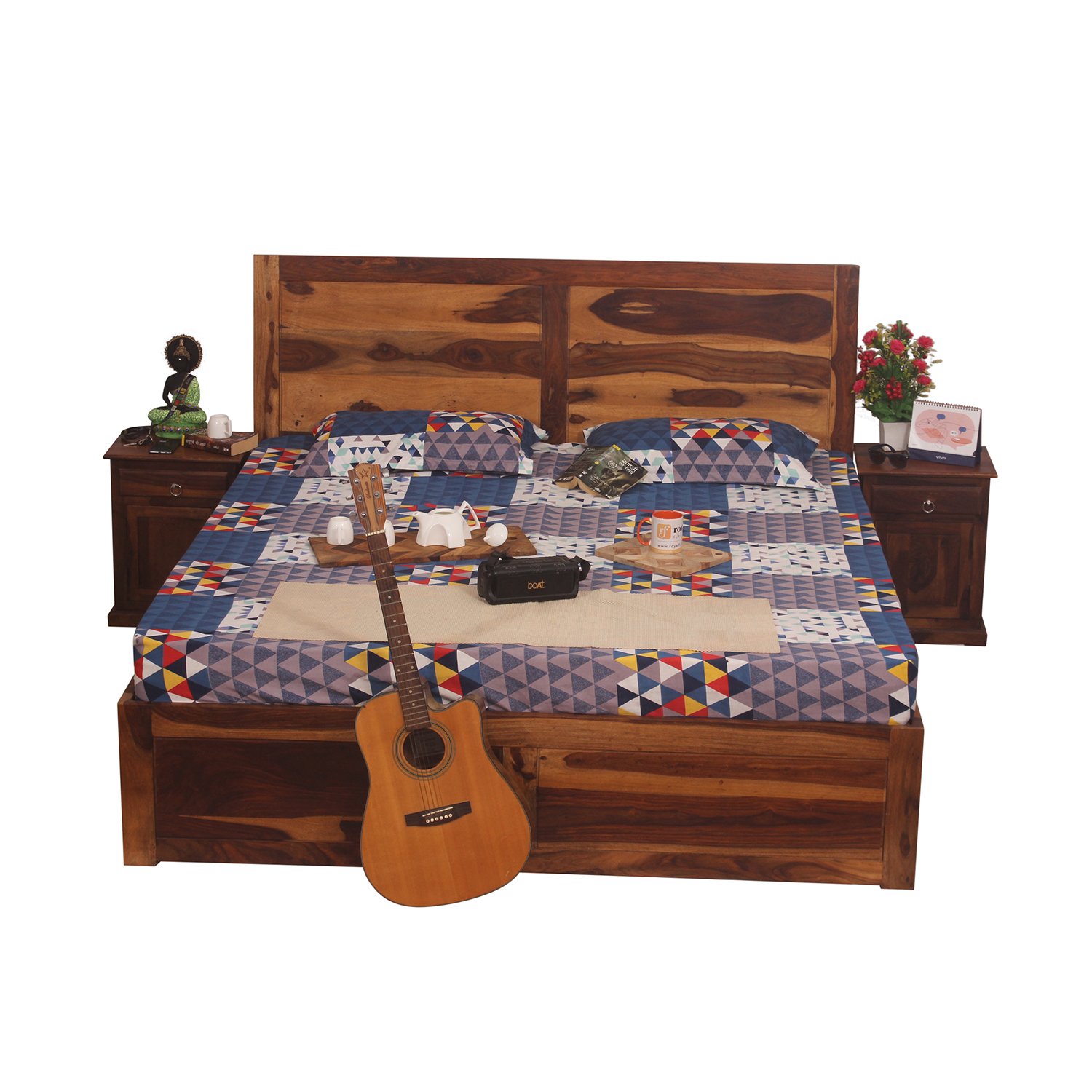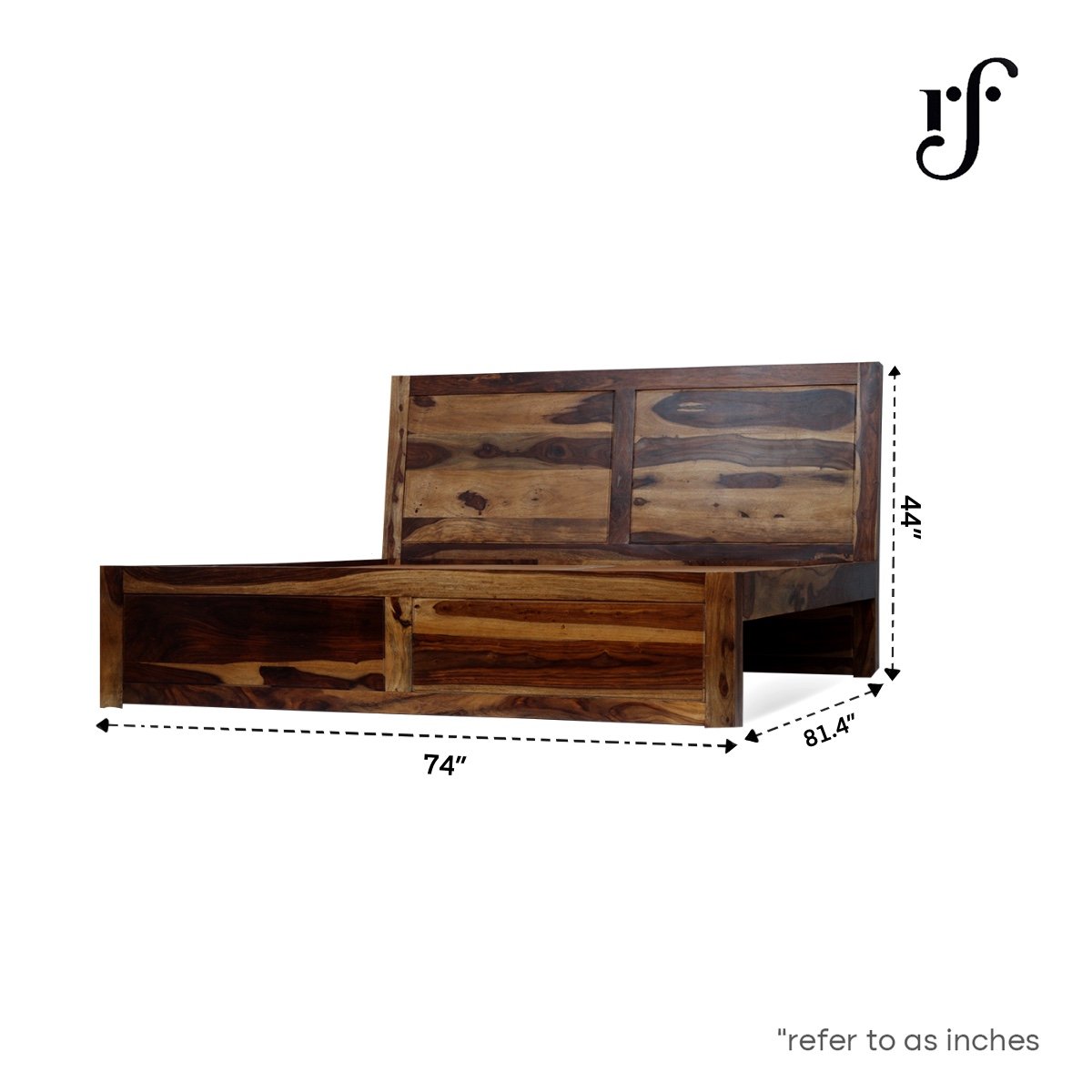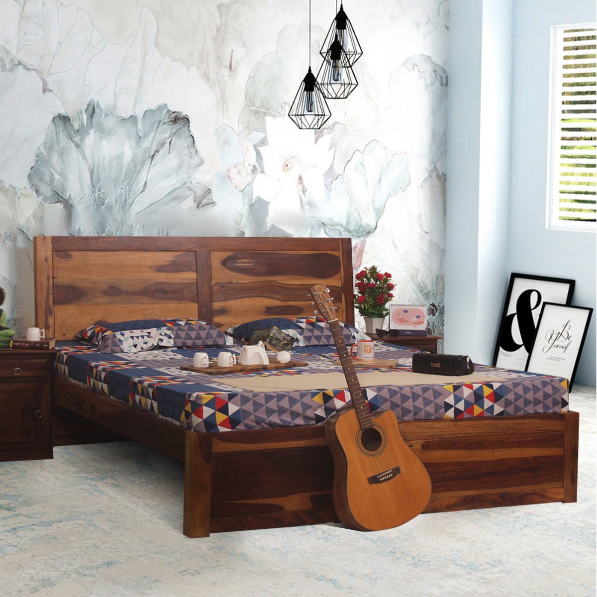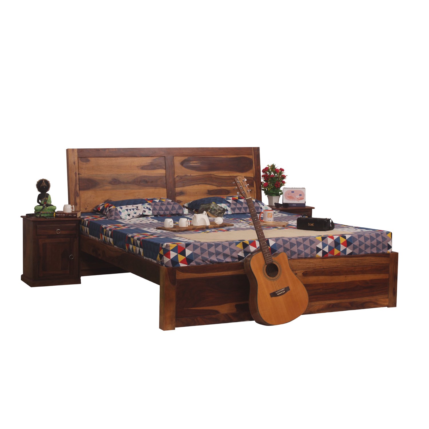 Royal Finish Simpaley King Without Storage Bed In Solid Sheesham Wood