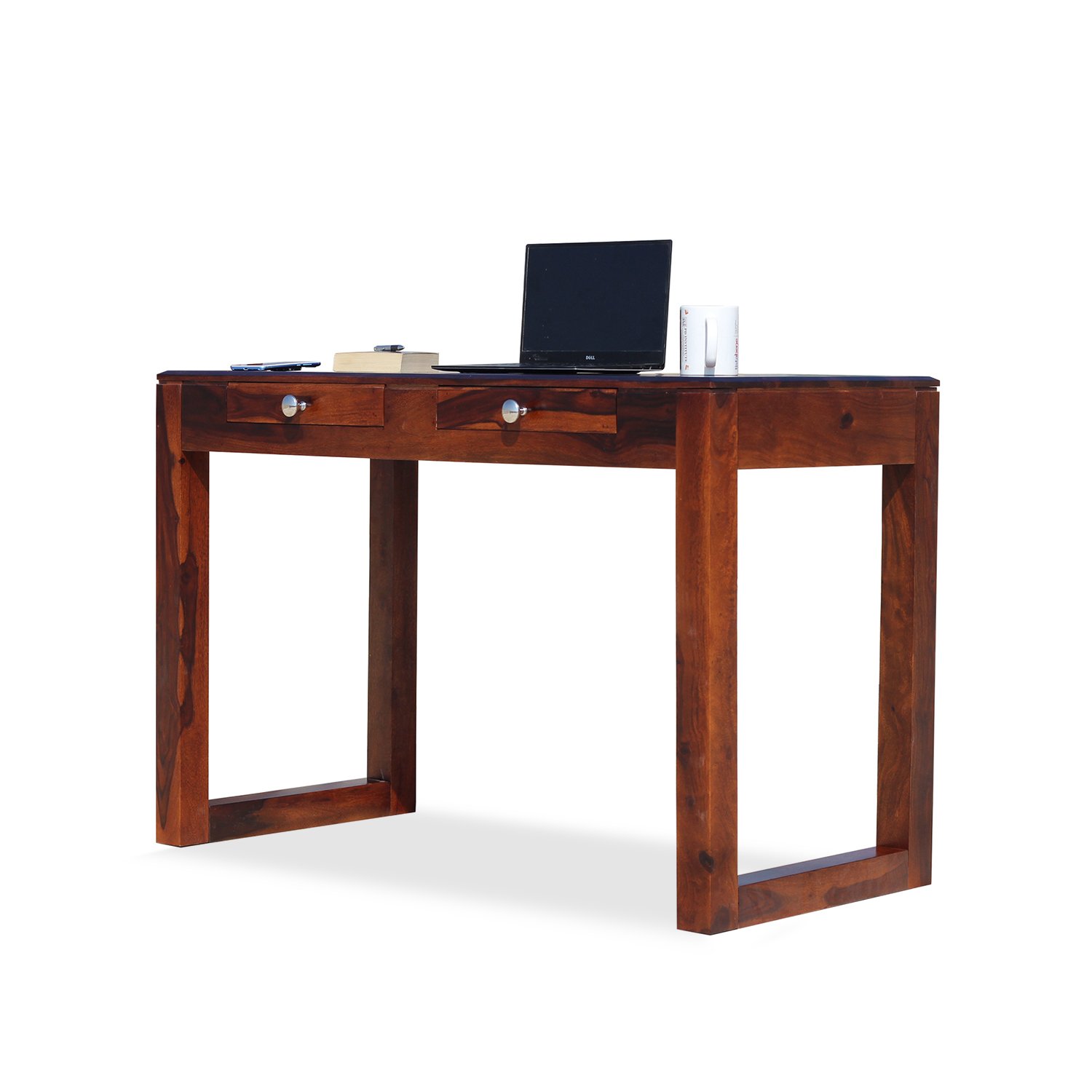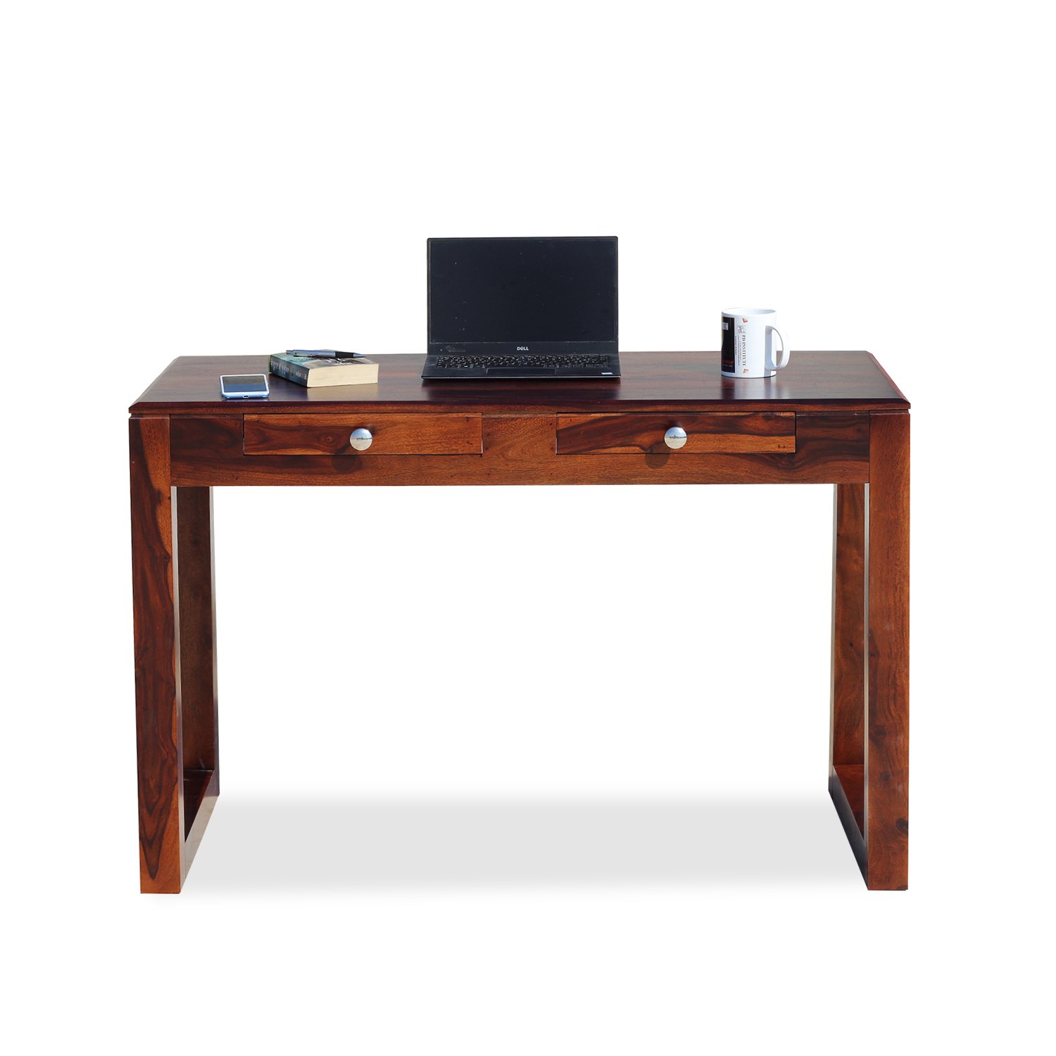 Royal Finish Two Drawer Pecan Minimal Study Table in Funriture Sheesham Wood